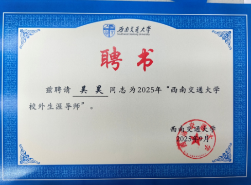 西南交通大学聘任我所吴昊律师担任“校外生涯导师”