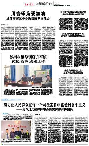 2018年5月12日,成都电视台经济频道播出了由元绪律师事务所谢佳佐主任、元绪律师事务所胡晖律师、资深企业信用管理专家郭晓庆参加的公益服务类节目《诚信四川》,三位嘉宾围绕如何构建社会诚信体系展开了专业探讨。